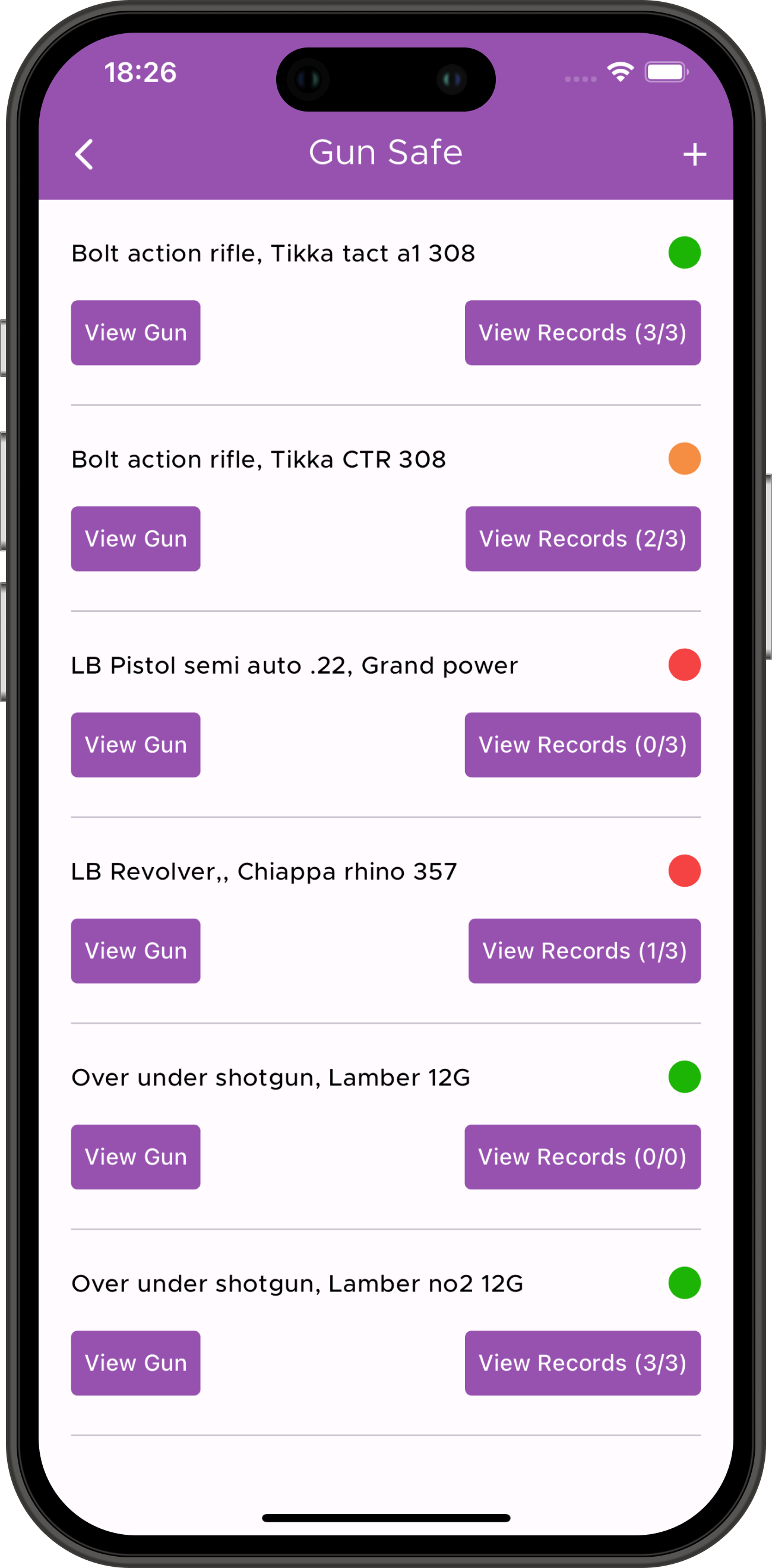 Manage all of your guns in one place and keep track of how many times they have been used each year.